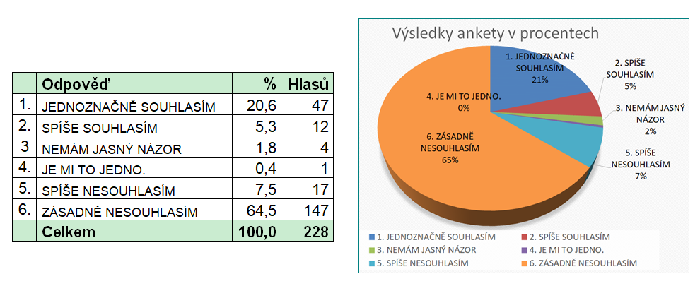 V elektronické anketě hlasovalo celkem 189 hlasujících. Platných bylo celkem 99 hlasů, což byli občané města. Celkem 90 hlasujících buď nebylo možné identifikovat, protože u sebe neuvedli své osobní údaje, většinou uvedli jen telefonní číslo, případně e-mail, podle kterého nebylo možné hlasujícího identifikovat. Případně nebyli ani občanem města, ani nevlastní na území města nemovitost.